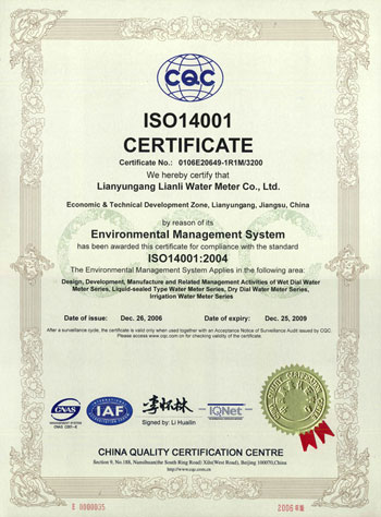 All rights reserved: Lianyungang Lianli Water Meter Co.,Ltd. Tel: 0086-518-82341113 Fax: 0086-518-82340789