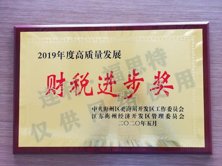 會議觀看了海州開發(fā)區(qū)2019年工作紀錄片,宣讀2019年度企業(yè)特殊貢獻獎、財稅貢獻獎、財稅進步獎、企業(yè)成長獎、安全生產(chǎn)主體責任落實獎等表彰決定,并舉行頒獎儀式。其中連云港連利·福思特表業(yè)有限公司榮獲2019年度高質(zhì)量發(fā)展“財稅進步獎”。